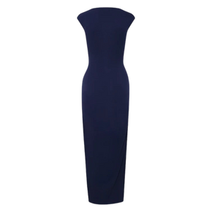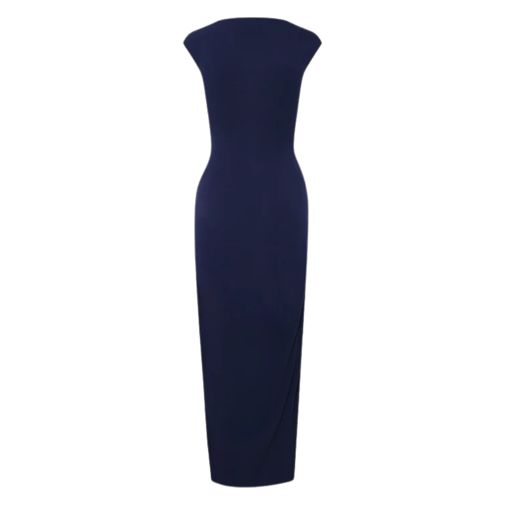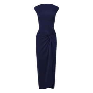 Este vestido largo de silueta ajustada y caída elegante es la definición de sofisticación atemporal. de tacto suave y con una dosis de elastano que aporta elasticidad y confort, su diseño incorpora un delicado nudo lateral que genera un drapeado sutil a la altura de la cadera, estilizando la figura.El escote cerrado y mangas tipo "cap sleeve" lo convierten en una prenda versátil. Material 95% algodon, 5% elastano.