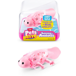 Sumérgete en un encantador mundo de diversión submarina con los axolotes de natación Pets Alive Con la avanzada tecnología activada por agua de ZURU, este peculiar y lindo amigo cobra vida cuando se coloca en el agua y nada en hasta 5 direcciones diferentes. ¿Qué color adoptarás?