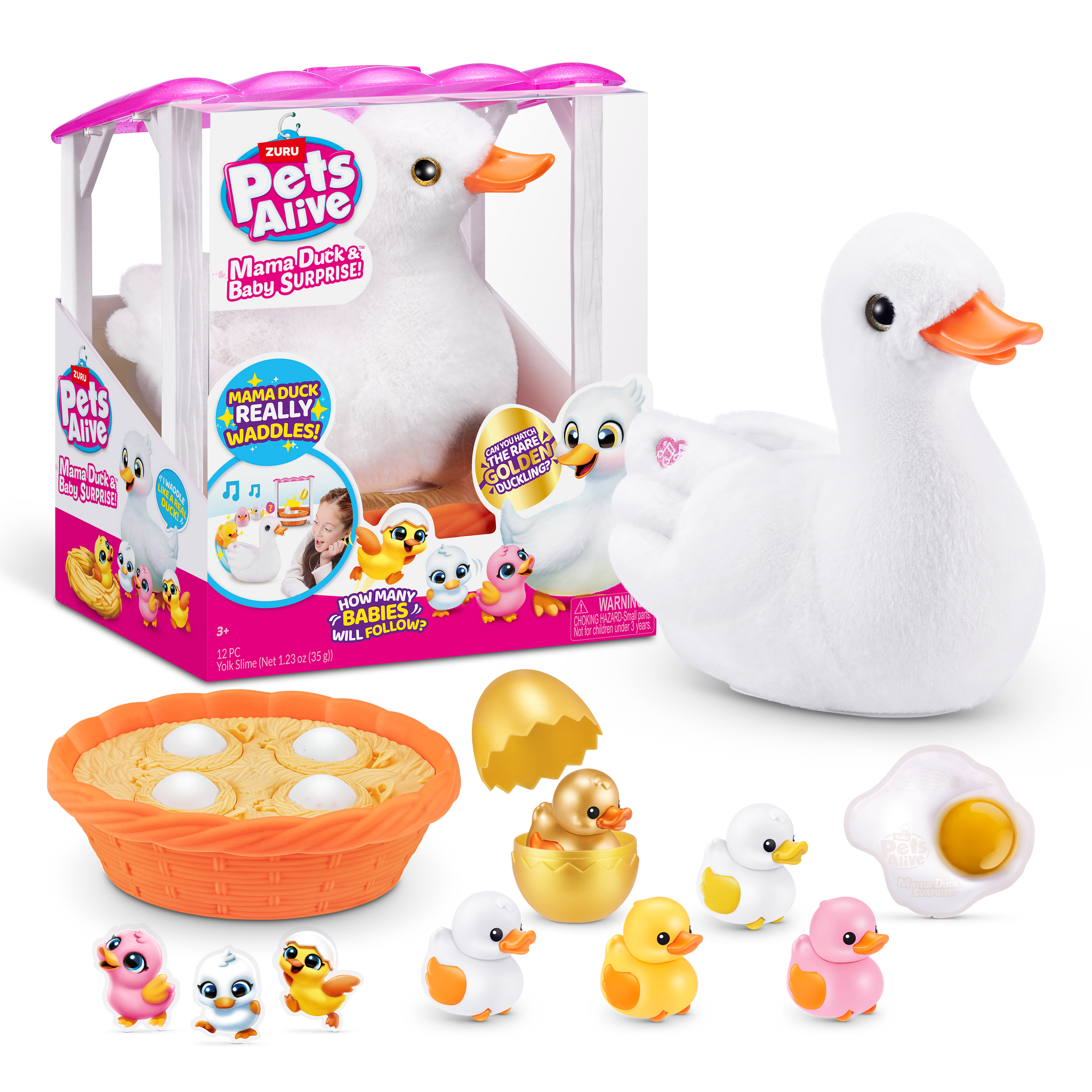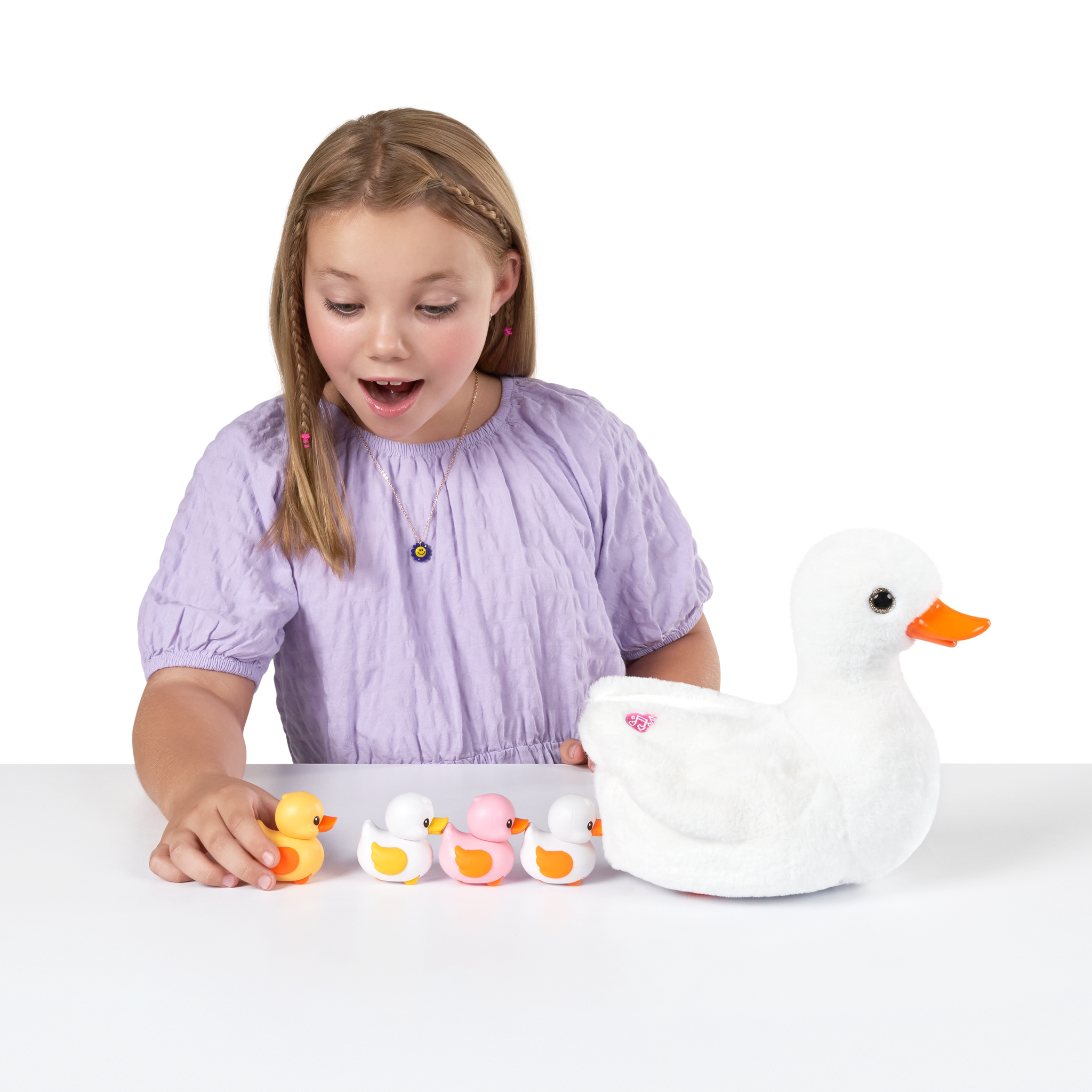 Más de 10 adorables sonidos: ¡Cuac, cuac, cuac! Presiona el corazón rosa en el ala de mamá pata para escucharla hacer sonidos de pato de verdad. ¡