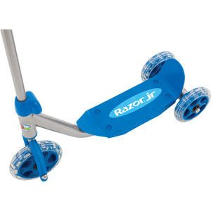 Finalmente, los pequeños tienen un montable de Razor para llamar propio. El diseño del Razor Jr. Lil' Kick Blue de tres ruedas hace un paseo más estable, mientras que la cubierta extra ancha antidesliz mantiene a los niños pequeños sobre sus pies.