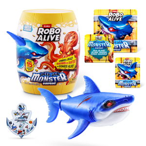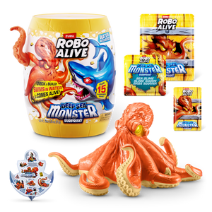 ¡Sumérgete en una emocionante aventura de desempaquetado con el Monstruo Sorpresa Zuru Robo Alive! Repleto de más de 15 sorpresas, slime y acción activada por agua, a los niños les encantará descubrir y construir su propio monstruo de las profundidades. ¡Míralo cobrar vida ante tus propios ojos!