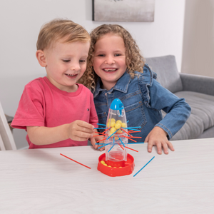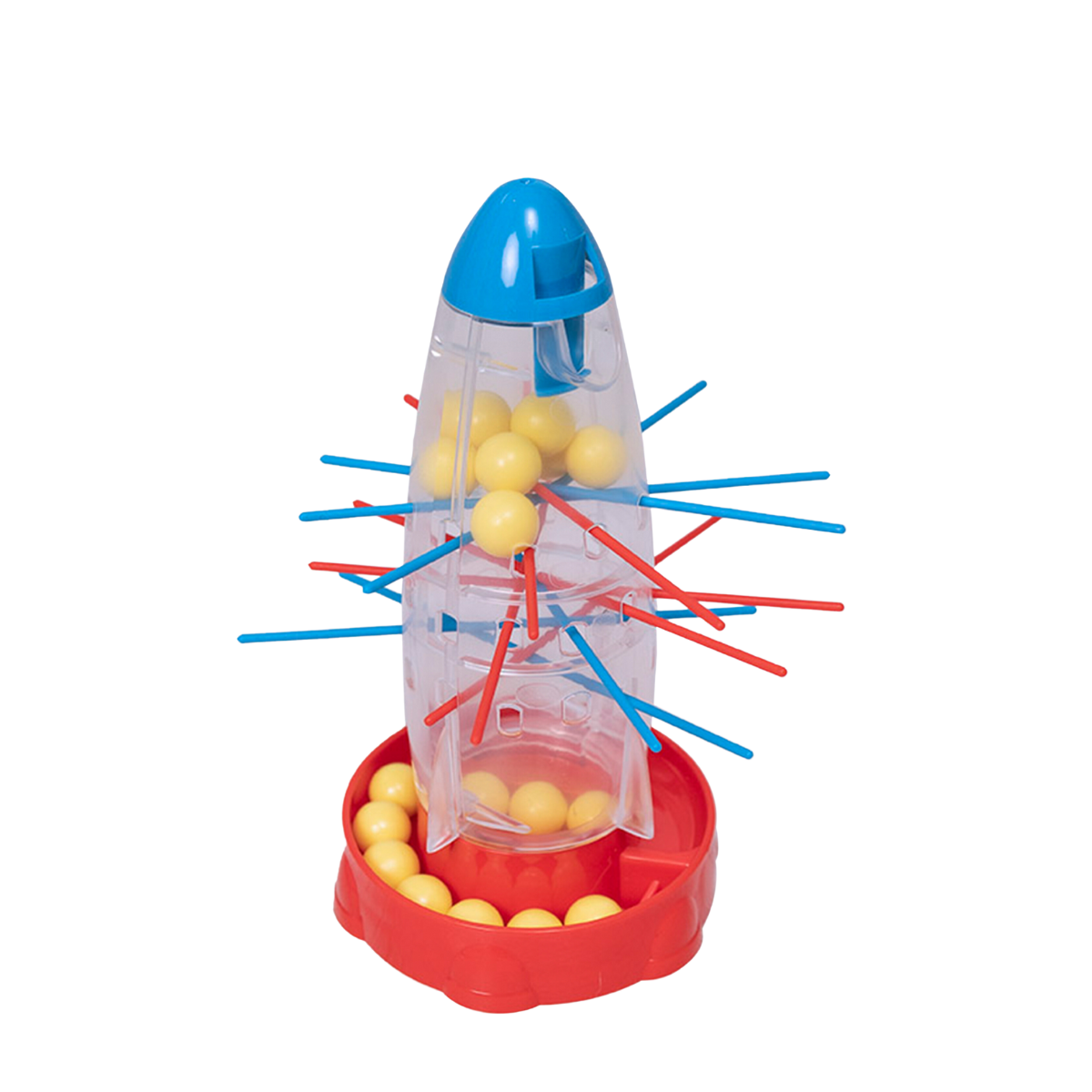 Un juego de viaje de habilidad y tensión que pone a prueba los nervios. Añade los palos al cohete y vierte las canicas en la parte superior, cada jugador se turnará para quitar un palo y evitar que se caiga ninguna canica.