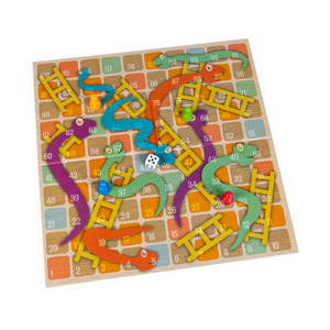 Disfruta de horas de diversión. Tira el dado y sube por el tablero en una carrera contra tu oponente. Cuidado con las serpientes resbaladizas o te deslizarás por el tablero.