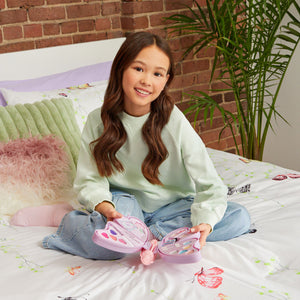 Este kit de cosméticos de mariposa incluye todo lo necesario para crear hermosos looks de maquillaje con un estilo revoloteante. Todos los componentes se almacenan perfectamente en la preciosa caja de mariposa para un uso fácil. Crea looks de maquillaje elegantes con el brillo de labios, sombra de ojos, rubor, brillo corporal, esmalte de uñas y gemas de uñas incluidos. Lima de uñas y aplicadores incluidos. Cierra las alas de mariposa para una exhibición de mariposa de pie y disfruta. Todos los cosméticos son probados de seguridad para niños a partir de 8 años. Mezcla y combina colores para probar diferentes estilos. Perfecto para preadolescentes que buscan cambiar su estilo y llevar su maquillaje sobre la marcha. Una gran idea de regalo para adolescentes elegantes, sin importar la ocasión. Incluye: 1 caja de mariposa 5 colores de sombra de ojos 4 colores de brillo de labios sólidos 1 color rubor (2 unidades) 1 color brillante de la carrocería (2 unidades) 1 tubo de brillo de labios 1 botella de esmalte de uñas 1 lima de uñas 1 hoja de piedras de uñas 2 aplicadores de brillo de labios 2 aplicadores de sombra de ojos 1 cepillo de cosmético