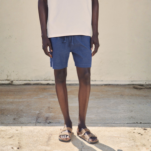 Bermuda rústica con bolsillos delanteros. Cierre con botón y cremallera. Cordón ajustable en cintura