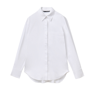Camisa de popelín de manga larga. Detalle de bolsillo en delantero. Cierre de botones.