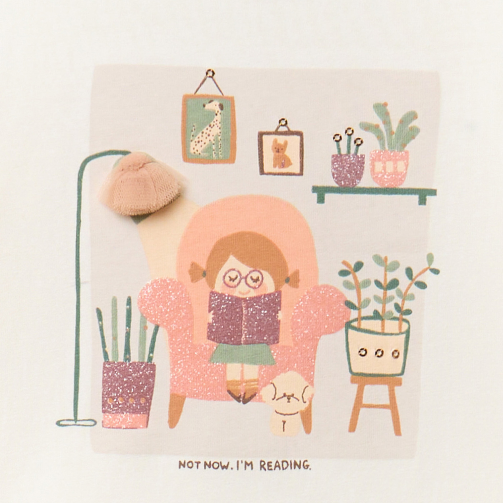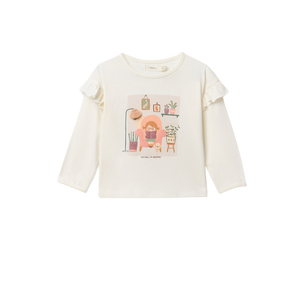 Camiseta de manga larga con dibujo estampado. Detalle de volante en mangas. Algodón 100%