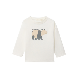 Camiseta lisa de manga larga y cuello redondo con detalle de dibujo. Algodón 100%.