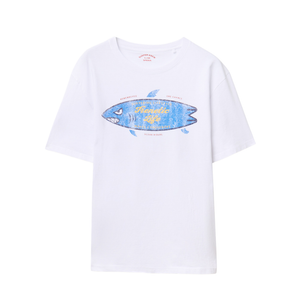 Camiseta estampada shark surf de manga corta y cuello redondo. Algodón 100%.