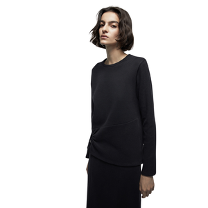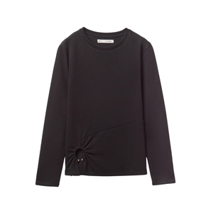 Camiseta en tejido suave con cuello redondo y manga larga. Detalle de aplique