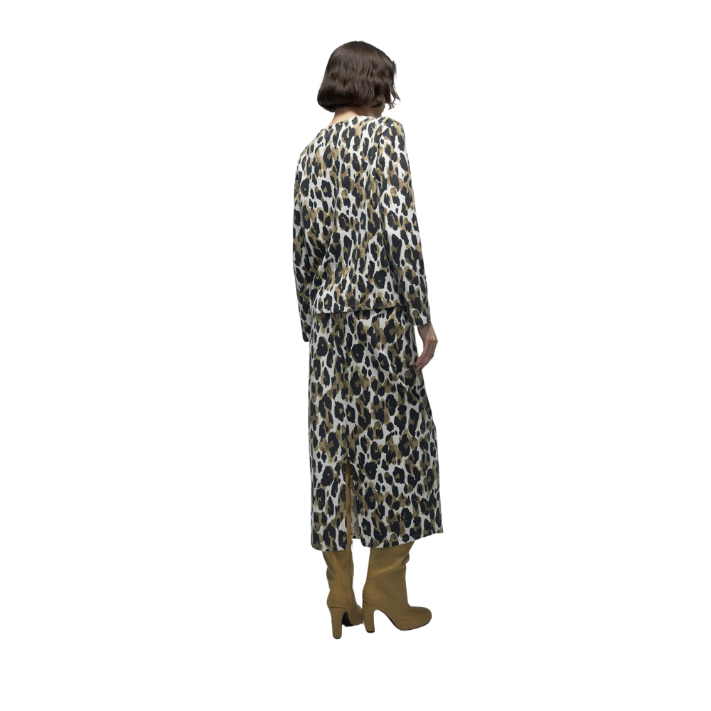 Falda midi en tejido suave con abertura en bajo trasero