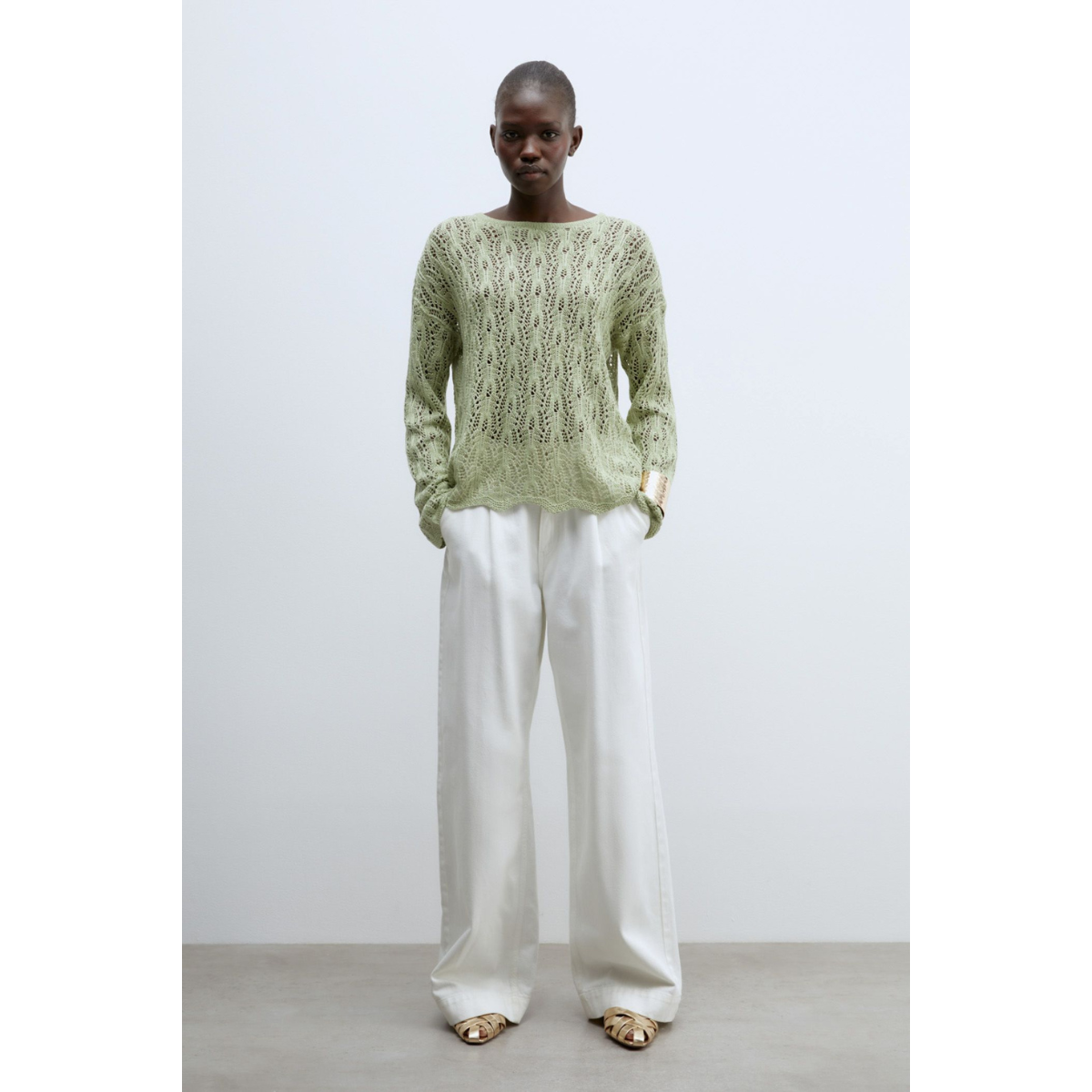 Jersey calado de manga larga y cuello barc