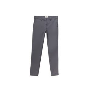 Pantalón chino liso slim con bolsillos. Cierre de botón y cremallera.