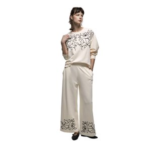 Pantalón cropped conjunto con goma en cintura y bajo con bordado. Tejido en mezcla de algodón