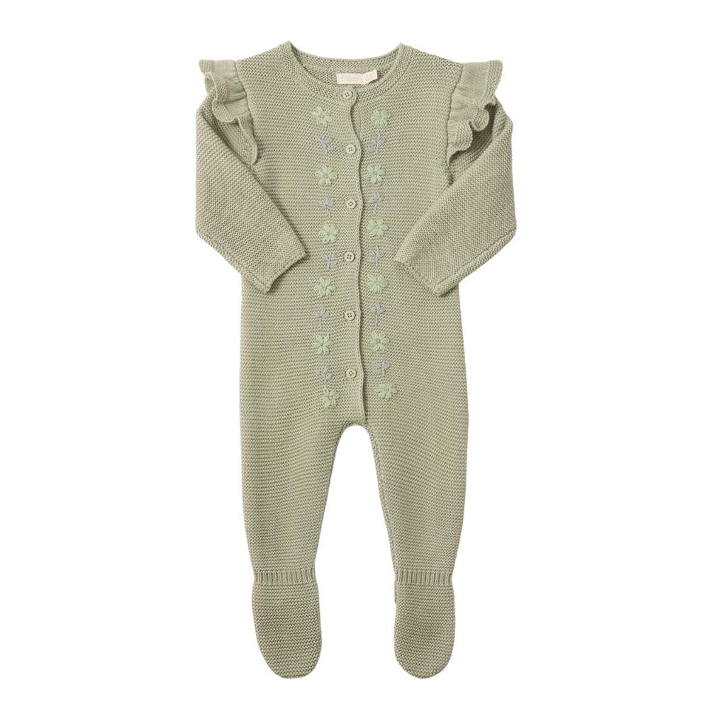 Pelele de punto con detalle de volantes y bordados. Cierre de botones. Algodón 100%