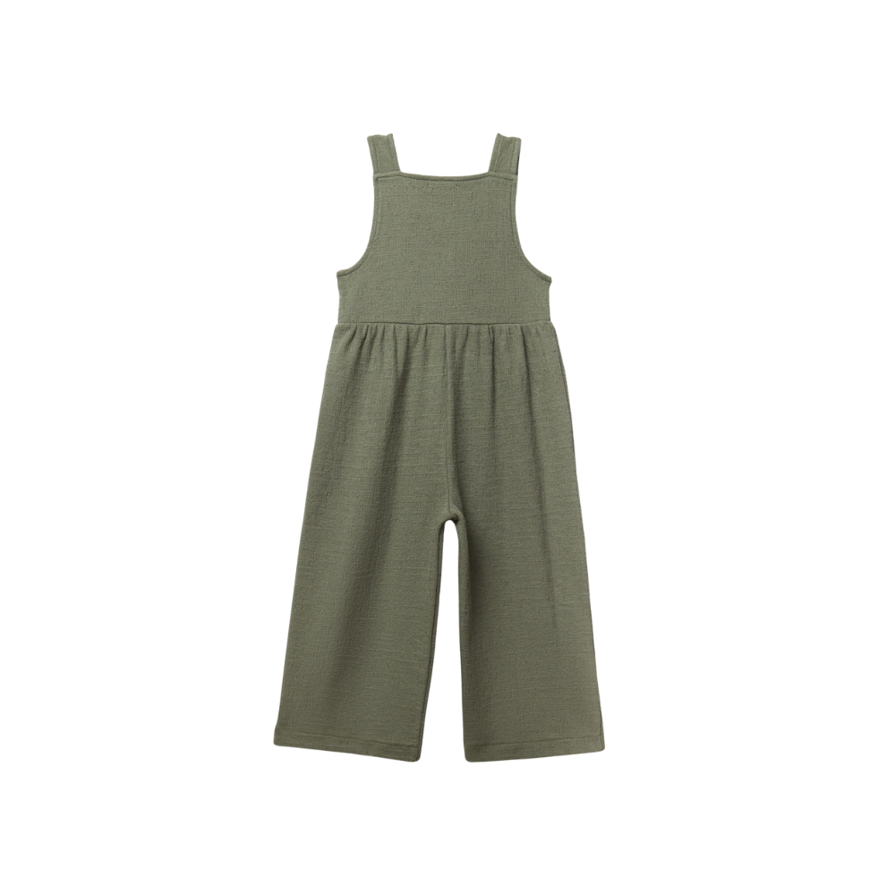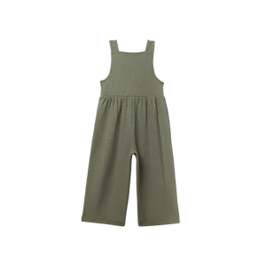 Peto largo de tirantes con detalle de frunces y cierre de botones.