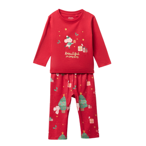 Pijama largo estampado de navidad con detalle de purpurina. Pantalón ajustable con goma en la cintura. Algodón 100%