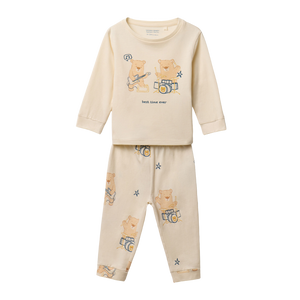 Pijama de dos piezas con dibujo de ositos músicos. Algodón 100%