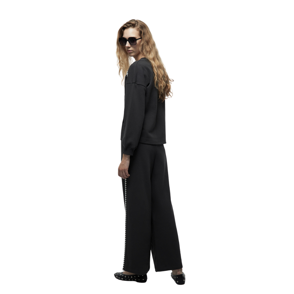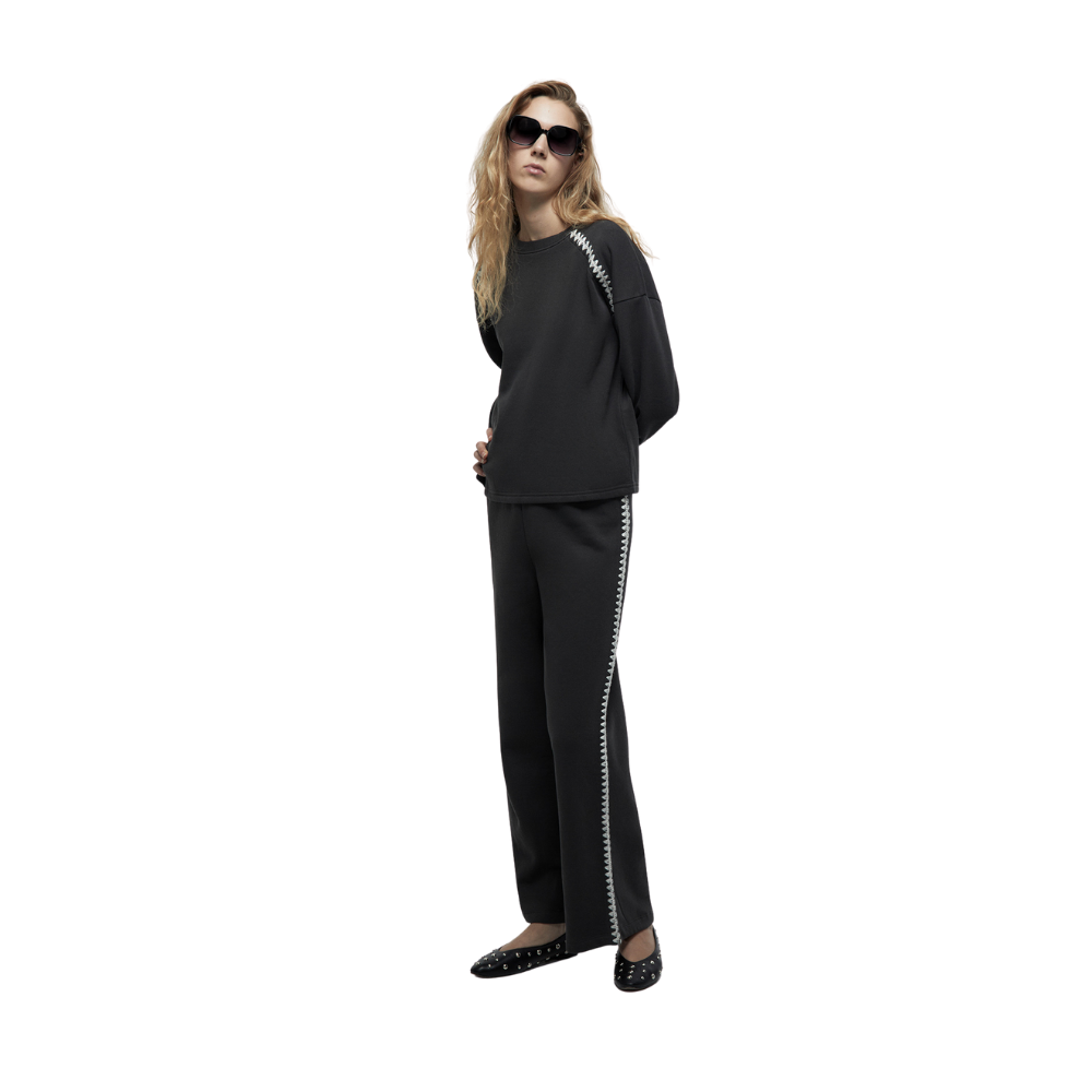 Sudadera con cuello redondo y manga larga con detalle de bordados a contraste