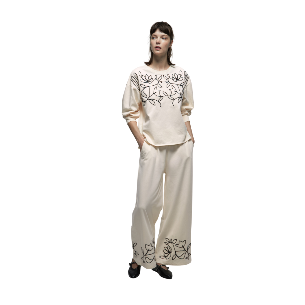 Sudadera conjunto con cuello caja y manga larga. Bordado frontal y tejido en mezcla de algodón