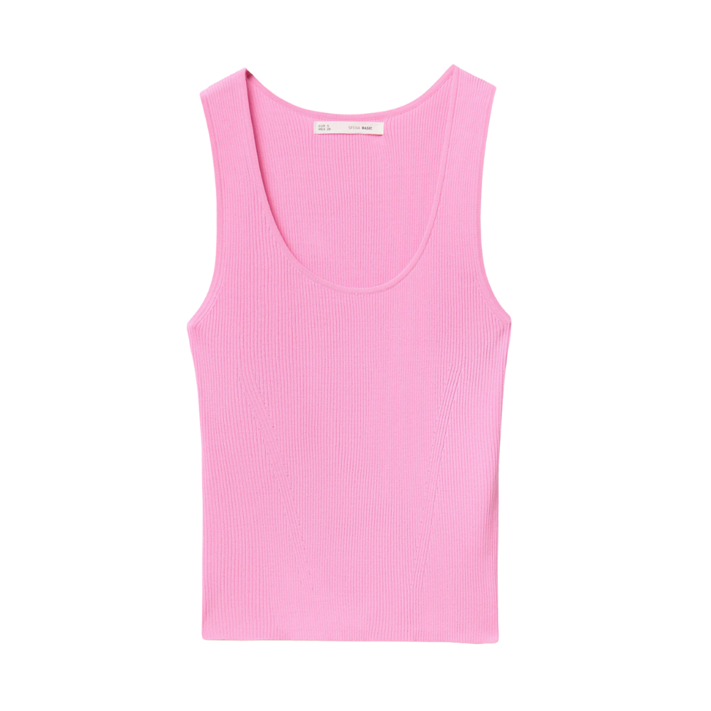 Top de tirantes de canalé con escote redondo