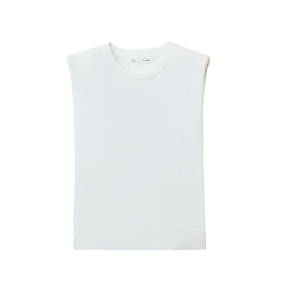 Top punto con manga sisa y cuello caja. Detalle de hombreras