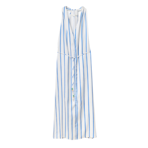 Vestido largo estampado con escote en V y cinturón