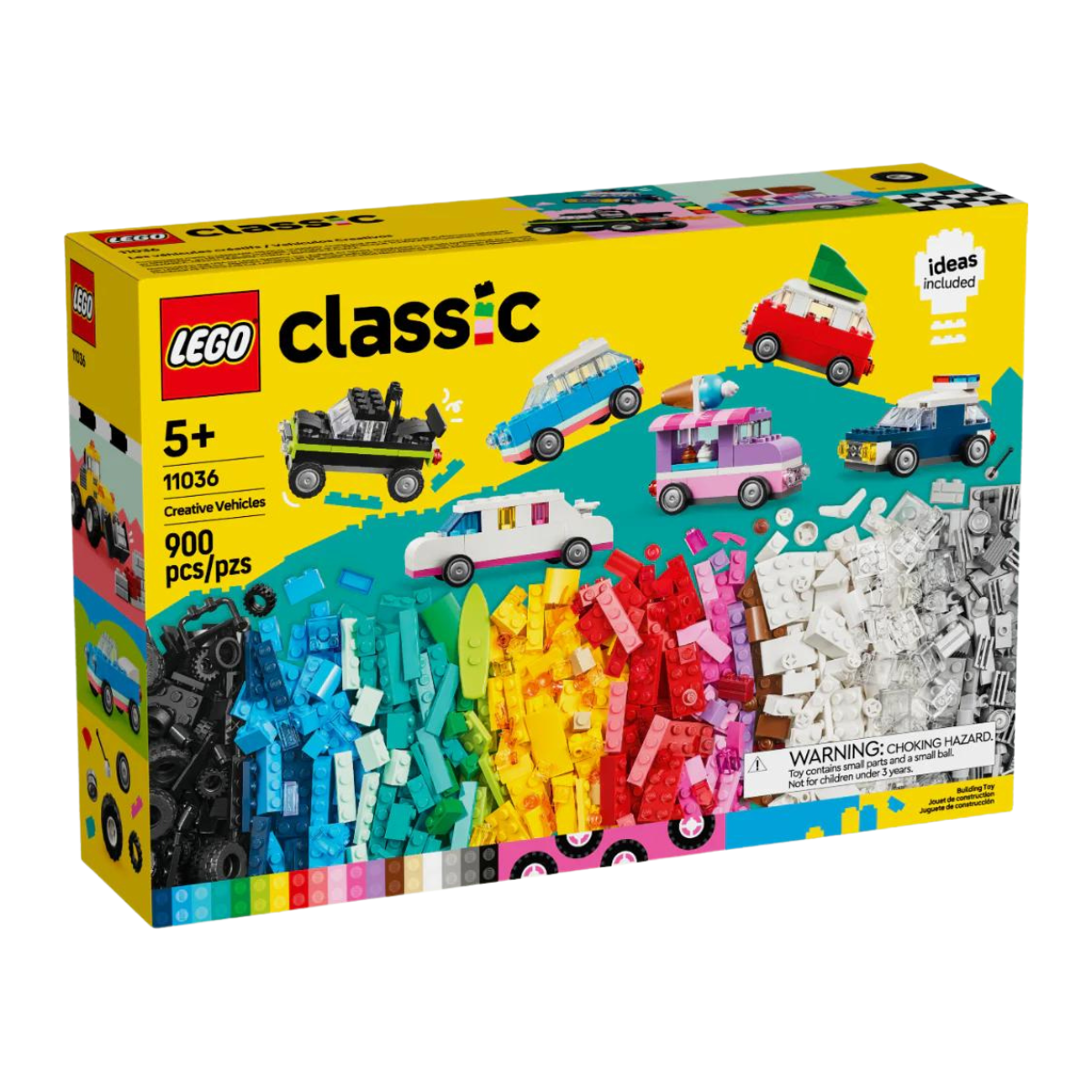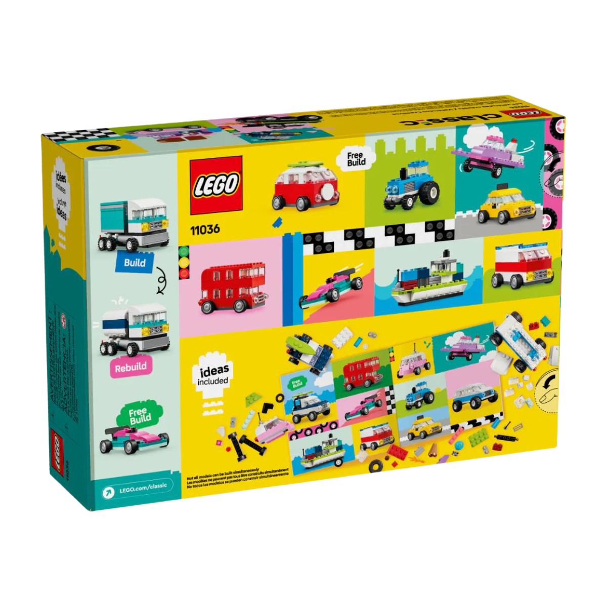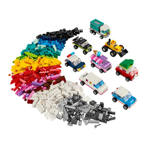 Con 900 ladrillos de construcción, elementos especiales y 52 ruedas, además de instrucciones fáciles de seguir, los peques pueden construir un coche de policía, un camión de los helados, un quad, un cargador frontal, un camión, un coche familiar, un todoterreno y una limusina de juguete. Después, basándose en las ideas sobre diseños, detalles y decoraciones, ¡podrán reconstruir los vehículos de muchas otras formas! Y, a medida que desarrollen sus habilidades de construcción creativa, se atreverán con sus propios diseños inspirándose en las 10 imaginativas ideas incluidas. Las instrucciones también están disponibles en la app LEGO Builder: su intuitiva guía de construcción.