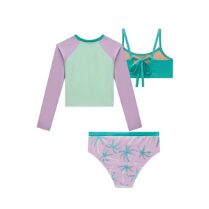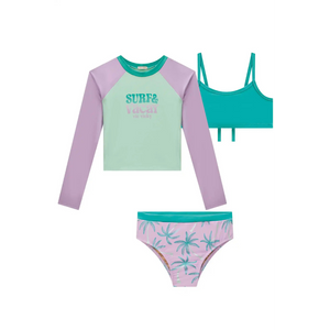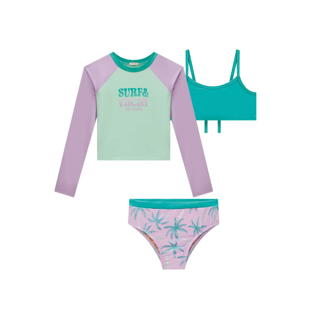 Trio de Bikini y Blusa Manga Larga, perfecto para las niñas que aman un look lleno de estilo y comodidad para disfrutar del verano.