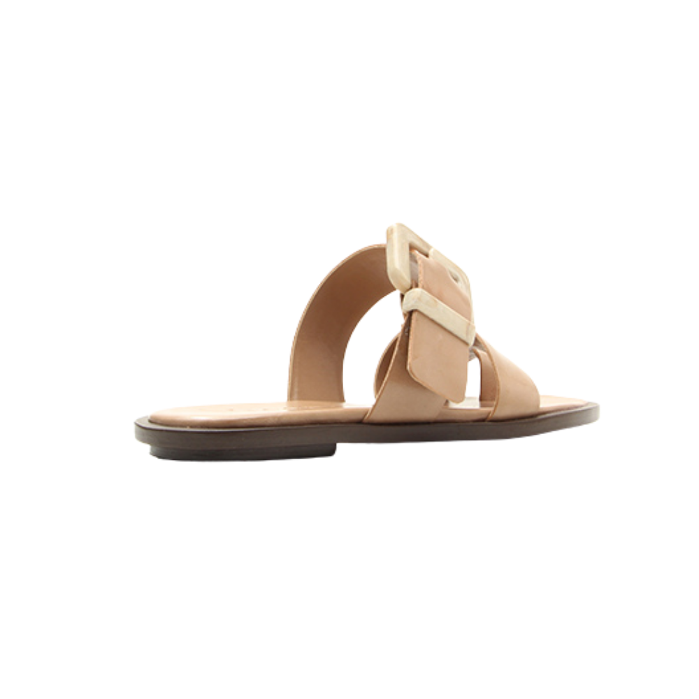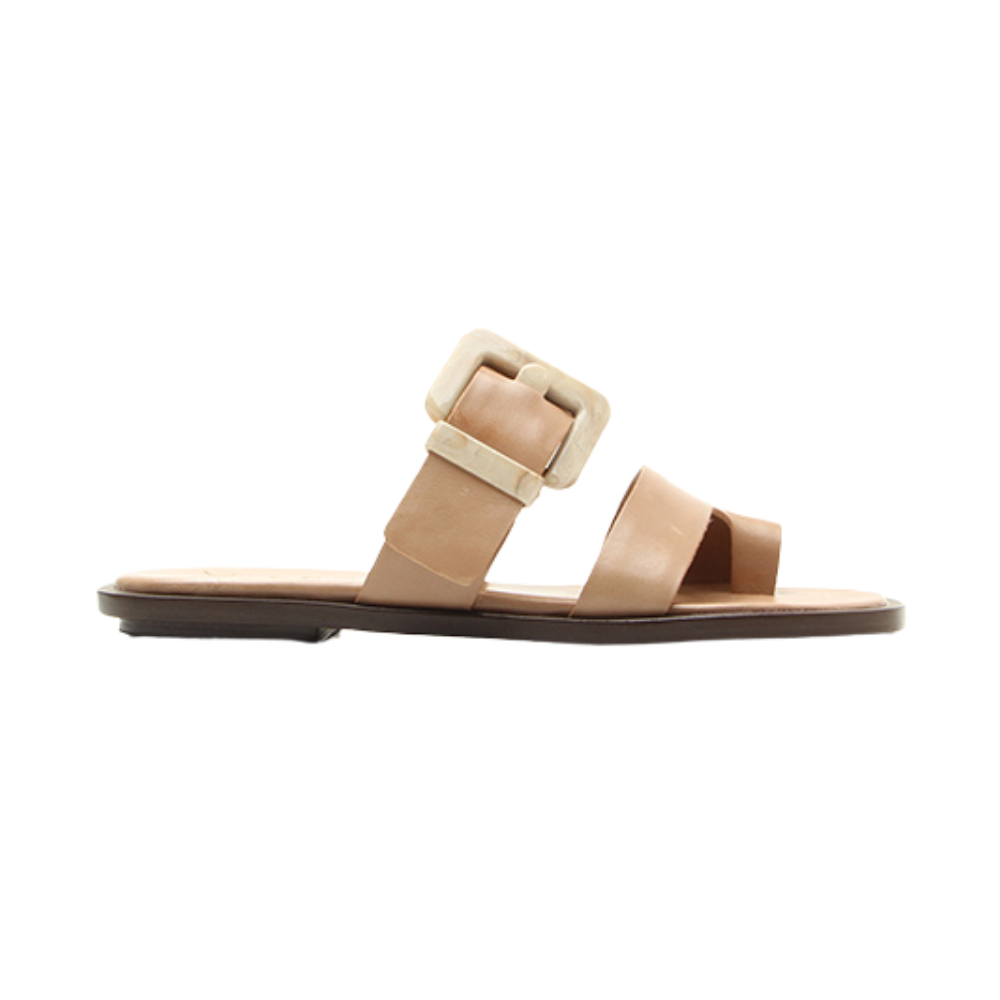 La sandalia P1206300090002 plana Vicenza redefine el minimalismo contemporáneo con un diseño limpio y sofisticado que equilibra elegancia y modernidad. Confeccionada en cuero liso en tono nude, presenta una silueta abierta con tira frontal y delicado detalle toe loop que estiliza el pie y aporta mayor estabilidad, mientras que la correa ancha superior se convierte en protagonista gracias a su maxi hebilla marmoleada, un elemento statement que añade carácter y distinción. Su plantilla suave y su suela baja y ligera garantizan comodidad durante todo el día, convirtiéndola en la pieza ideal para elevar looks relajados de verano, desde vestidos fluidos hasta conjuntos en lino o denim, aportando un acabado refinado y contemporáneo en cada paso.